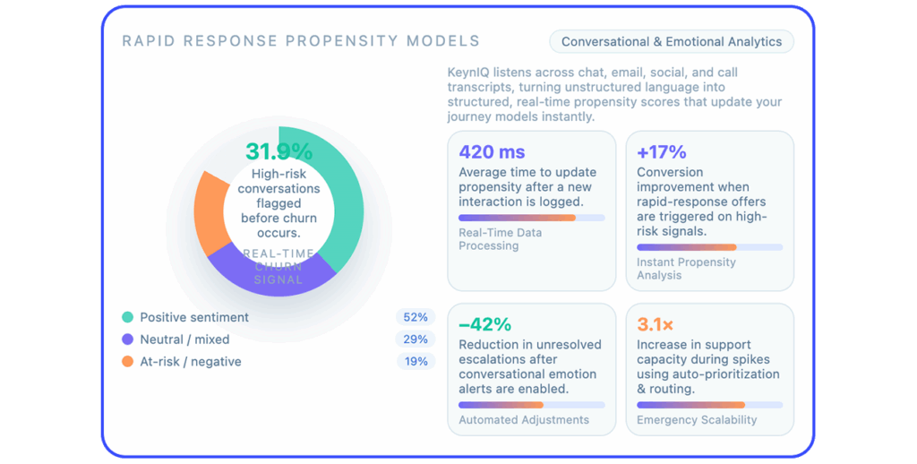 Develop rapid response propensity models and feedback analysis for conversational and emotional analysis, adapting swiftly to market changes and customer sentiments.